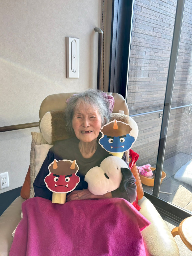 ボールで皆さん「鬼は外!」と投げて、準備バッチリです♪