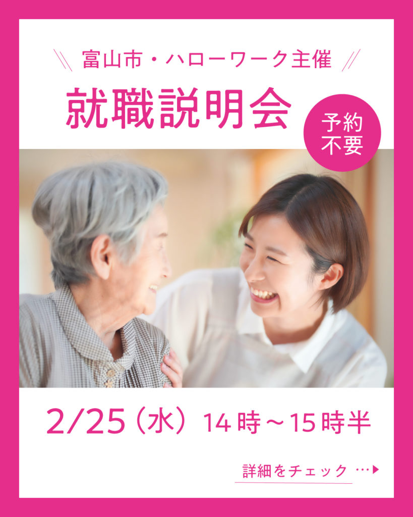 富山市介護保険課・ハローワーク富山が主催の介護職場の就職説明会が開催されます!