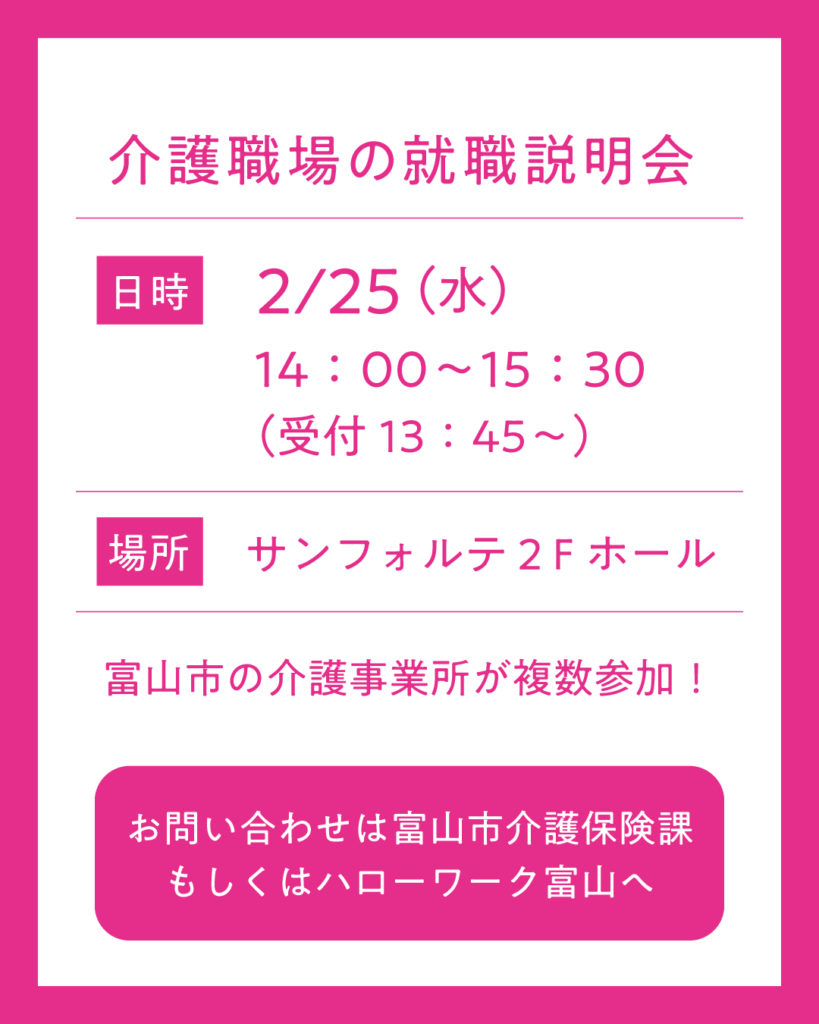 詳しいお問い合わせは富山市介護保険課もしくはハローワーク富山へ!