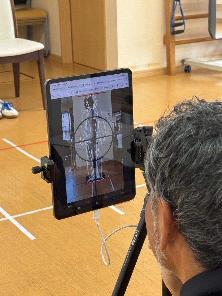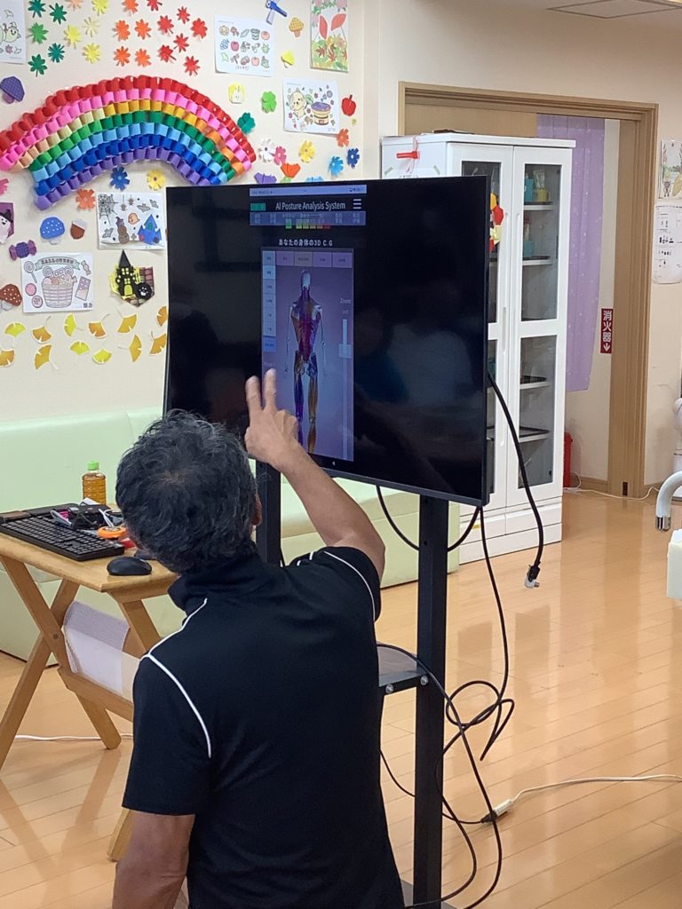太陽スポーツ様からは、姿勢についての講座やAiを使った姿勢の数値測定、ウォーキングポールの使い方などを教えていただきました。