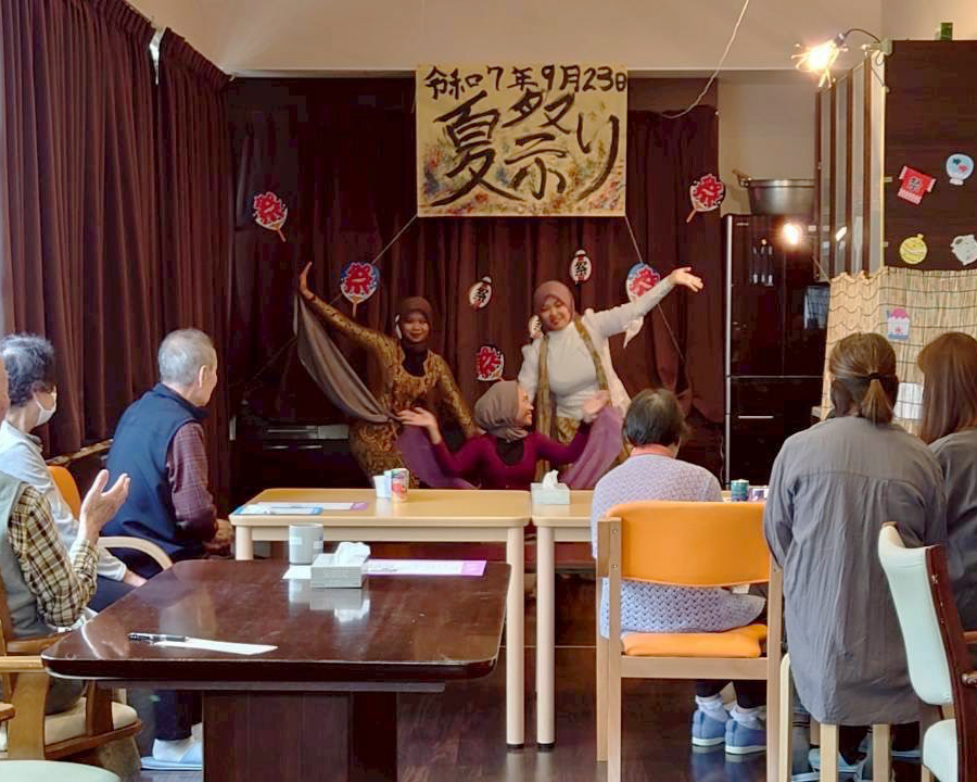 毎年恒例の夏祭り!今年も9月23日に開催しました。皆さま笑顔で過ごされていました☺️ノンアルコールビールで乾杯する姿も見られました!笑インドネシアのスタッフからは踊りを披露✨