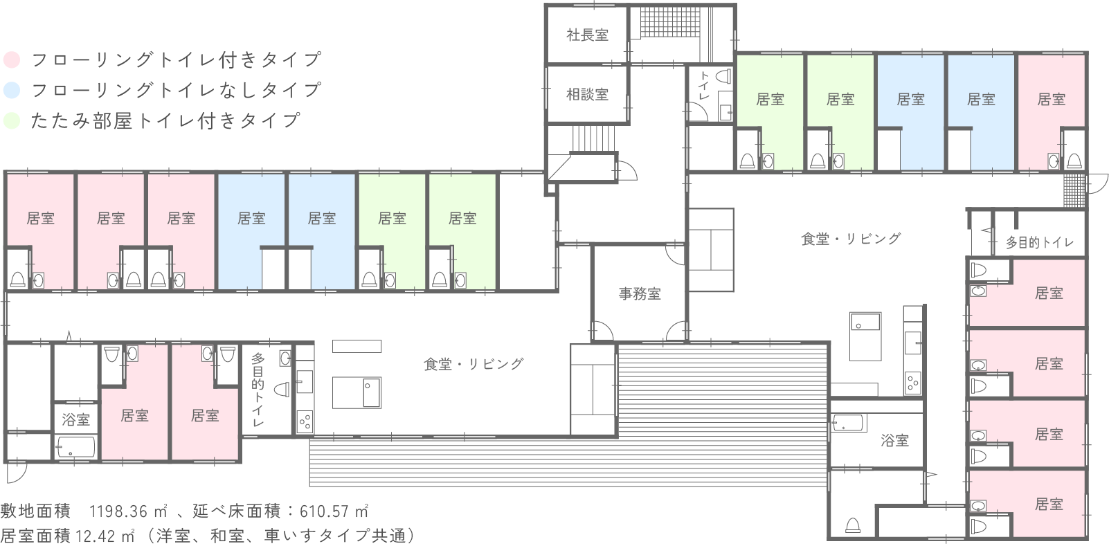 居室面積12.42㎡(洋室、和室、車いすタイプ共通)